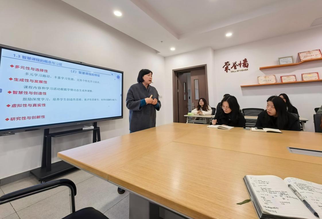 围绕国家级一流课程的建设与申报,楼教授具体解读相关政策导向与评价指标,强调课程需兼具“高阶性、创新性、挑战度”,并落实立德树人的根本要求。她还分享了在课程团队建设、教学大纲制定、数字资源开发、智慧教学平台搭建以及教学模式创新等方面的实践经验,包括课程思政案例库、跨学科知识图谱、虚拟仿真实验项目在内的一系列建设成果。