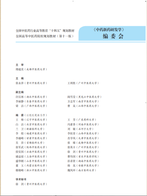 taptap点点曹纬国教授参与“十四五”规划教材《中药新药研发学》的编著