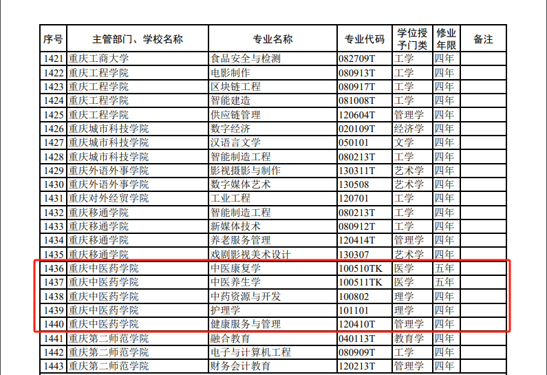 根据教育部、重庆市教委有关文件精神,学校提前部署,积极组织相关学院精心准备、认真筹划新专业申报。在深入调研社会需求的基础上,组织校内外行业专家,开展了多角度、全方位的论证,力求科学、务实地推进新增本科专业申报工作。经校内专业设置评议专家组审议推荐、重庆市教委审核、教育部专业设置与教学指导委员会评议,taptap点点申报新增的中医康复学、中医养生学、中药资源与开发、护理学、健康服务与管理五大专业均获得备案通过,为学校的教学质量和专业发展增添了新的亮点。