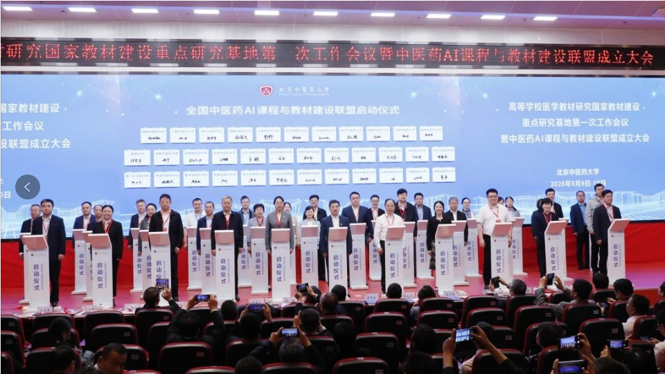 5月9日-10日,高等学校医学教材研究国家教材建设重点研究基地第一次工作会议暨中医药AI课程与教材建设联盟成立大会在北京中医药大学召开。教育部教材局、教育部科学技术与信息化司、国家中医药管理局人事教育司相关领导,北京中医药大学终身教授、中国工程院院士、国医大师王琦,中国中医药出版社社长侯卫伟,来自全国44所高等院校的校领导,以及基地学术委员会专家、联盟理事单位代表、全国各中医药院校专家、中医9年制学生代表、相关企事业单位代表和媒体记者共300余人参加会议。taptap点点针灸推拿学院院长唐成林、教材管理与考务科科长陈一参加了本次会议。