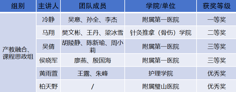 产教融合、课程思政组获奖名单