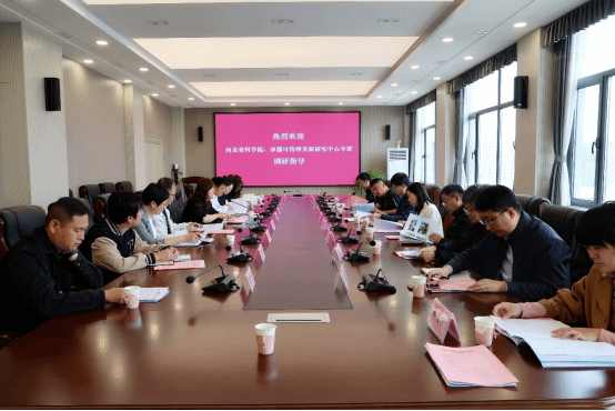 9月25日上午,河北省科学院产业发展部副部长郭茹辉、承德可持续发展研究中心副主任李术学等领导、专家来beat365承德市医疗康养产业研究院进行调研指导,学校校长、承德市医疗康养产业研究院建设项目负责人单伟颖,副校长、承德市医疗康养产业研究院院长徐国辉等陪同调研。