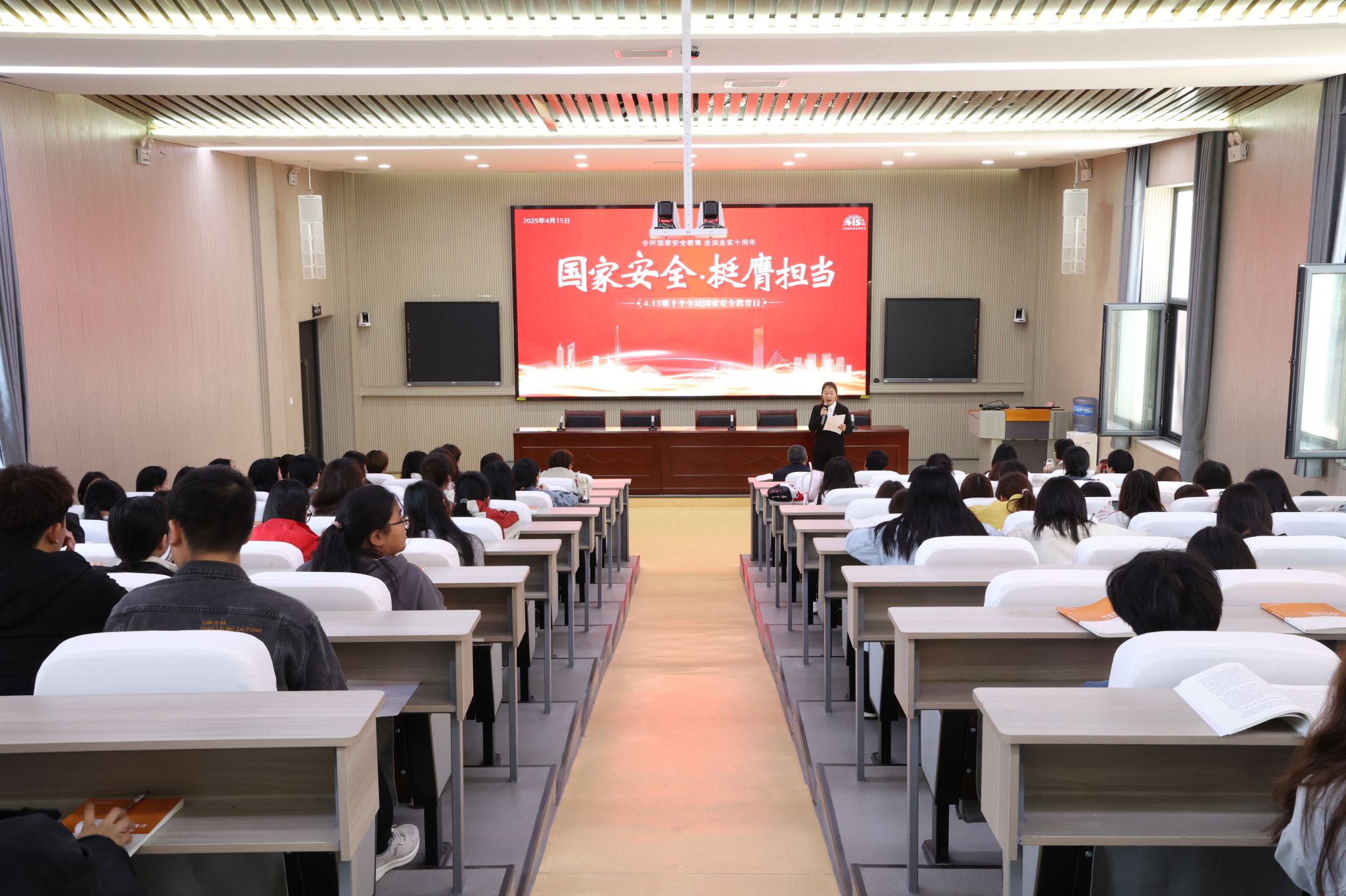 4月15日,思政部在1号教学楼会议厅组织开展了“国家安全 挺膺担当”为主题的国家安全讲座暨优秀文创作品创作者表彰的国家安全教育日活动。今年4月15日是第十个全民国家安全教育日,教育部思想政治工作司下发了《关于组织开展2025年全民国家安全教育日活动的通知》,要求各学校组织丰富多样的教育活动。