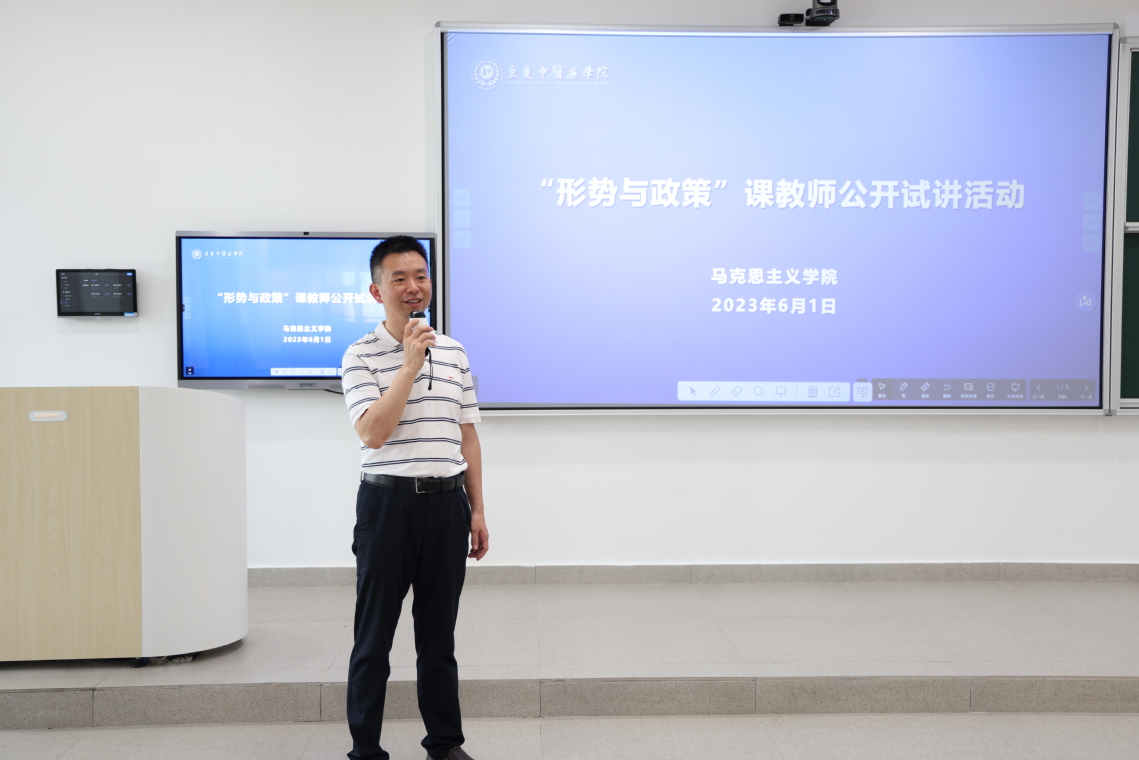 2023年6月1日下午,taptap点点官方网站马克思主义学院在综合教学楼E1-106教室举办“形势与政策”课教师公开试讲活动。重庆医科大学马克思主义学院郭德君教授、taptap点点学生处临时负责人苏通波、教学督导邢峰、卢德春、程娟莅临活动现场进行指导,9名教师参与试讲。