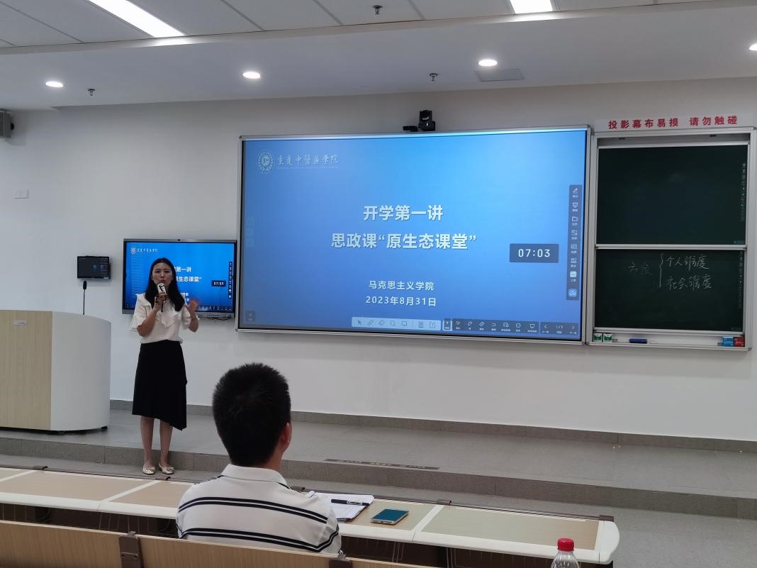 2023年8月31日下午,为做好9月份开学准备,马克思主义学院在综合教学楼E1-106教室举行“开学第一讲”——思政课“原生态课堂”活动。学院全体专职教师参加试讲,活动由学院党总支书记、院长代浩云主持。