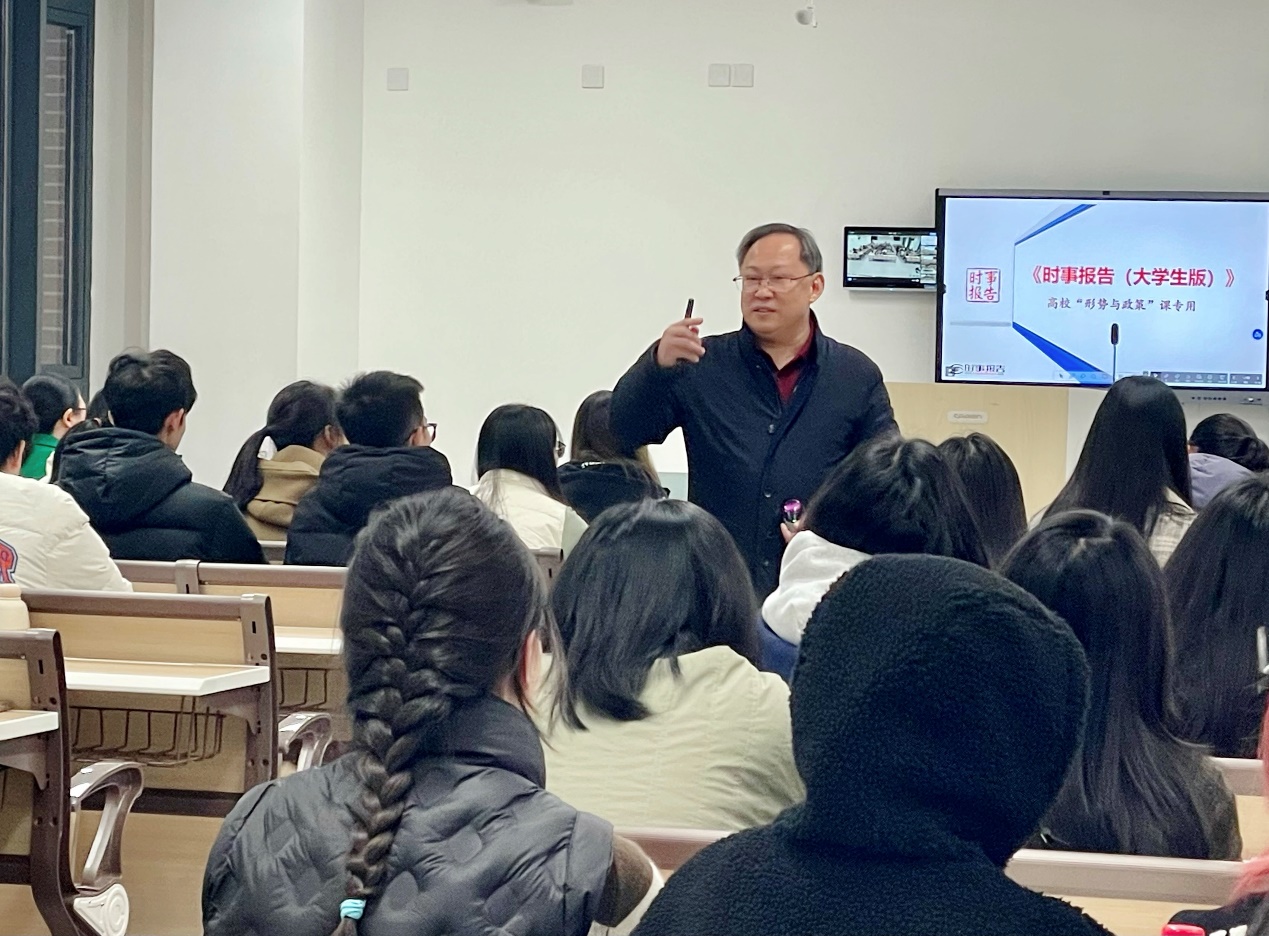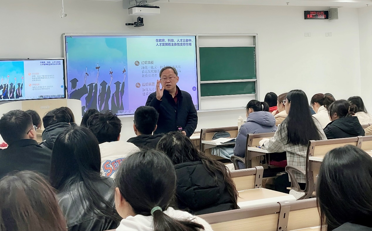 11月21日下午,副院长林治华教授为2023级针灸推拿学4-6班的同学讲授了“加快建设教育强国、科技强国、人才强国”为主题的形势与政策课。
