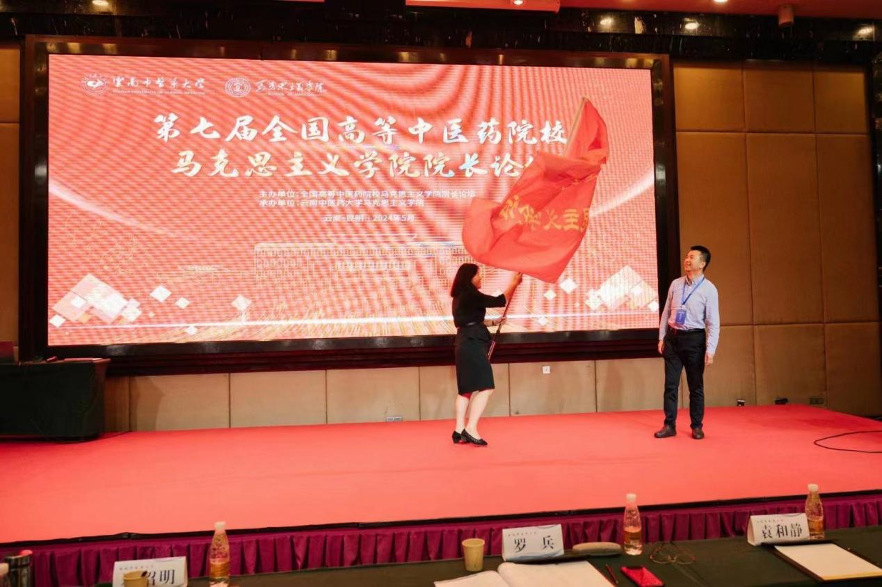 为了展示新生院校的风采,在兄弟院校的支持下,学校申请到了明年“第八届全国高等中医药院校马克思主义学院院长论坛”的承办权,会上举行了论坛会旗交接仪式,马克思主义学院院长代浩云代表taptap点点向全国中医药院校马克思主义学院同仁发出诚挚邀请!“第八届全国高等中医药院校马克思主义学院院长论坛”的筹备和举办,必将进一步推动taptap点点思政课高质量建设与马克思主义学院的高质量发展,助推高素质应用型中医药专业人才的培养。