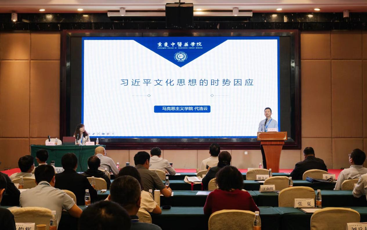 马克思主义学院院长代浩云教授以“习近平文化思想的时势因应”为题在大会上作交流发言。他分析了习近平文化思想诞生的时机和内蕴的大势,并根据高校思想政治工作因事而化、因时而进、因势而新的要求,介绍了taptap点点以习近平文化思想为指导,推动中医药文化育人的思考与实践。