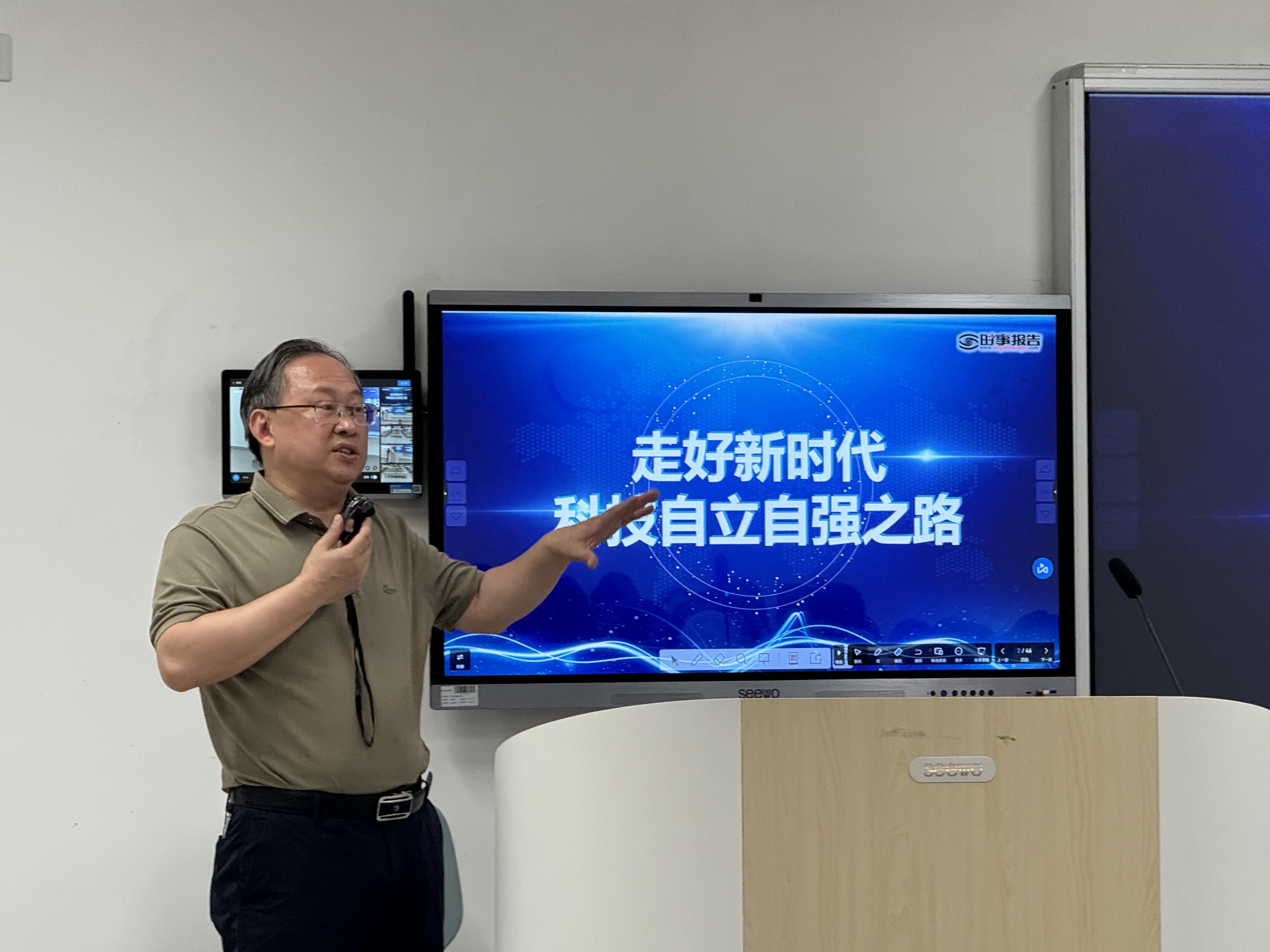 5月24日,校领导思政讲堂邀请学院副校长林治华教授以“走好新时代科技自立自强之路”为主题,为中医学7-9班讲授《形势与政策》。