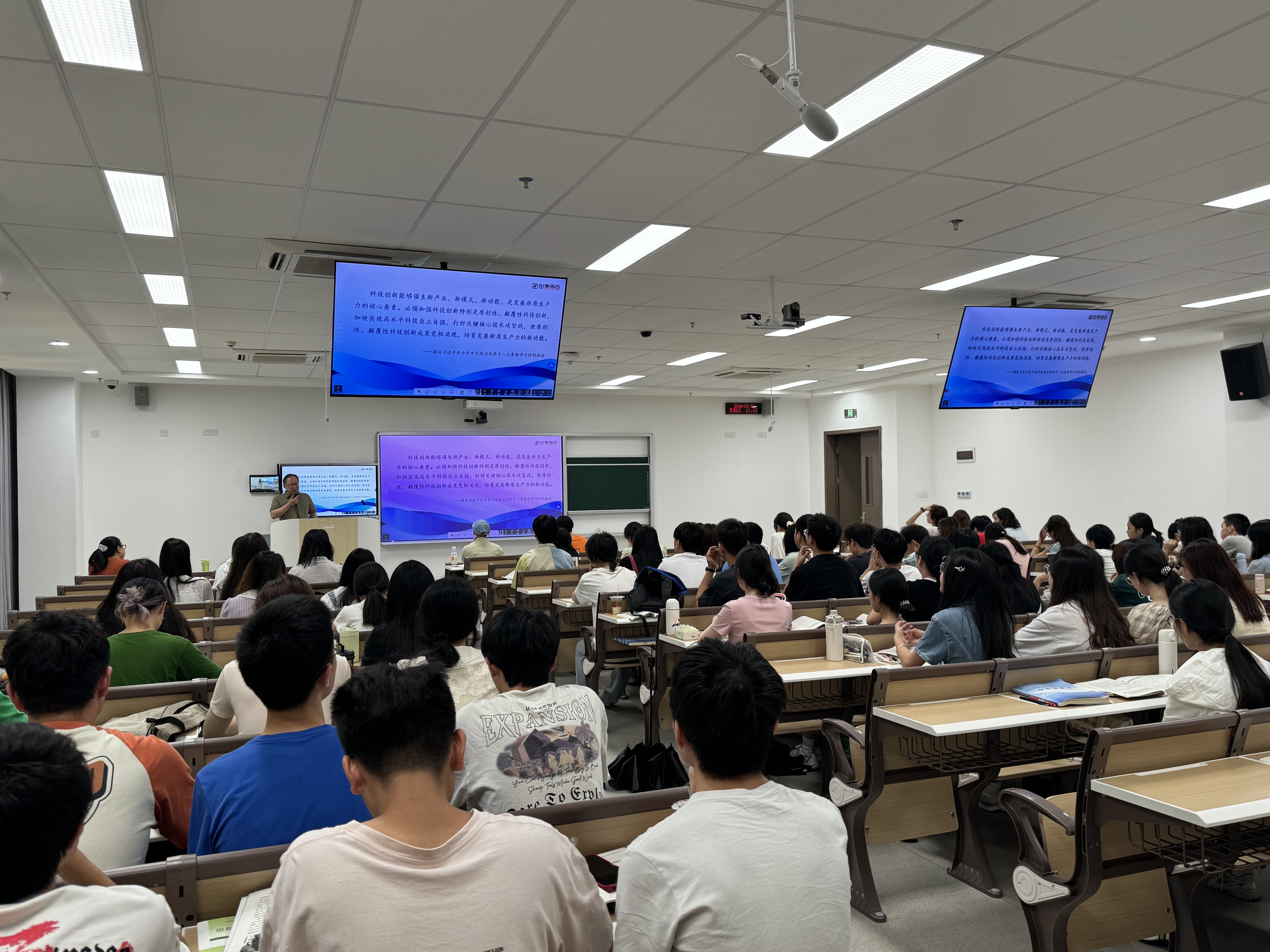 同时,林校长结合自己的学习、工作经历,语重心长地鼓励同学们要树立主人翁意识,积极主动地将自己的命运同国家民族的命运紧紧联系在一起,在实现高水平科技自立自强和建设科技强国、人才强国实践中建功立业,在以中国式现代化全面推进中华民族伟大复兴进程中奉献青春和智慧,同学们深受感染和启发。