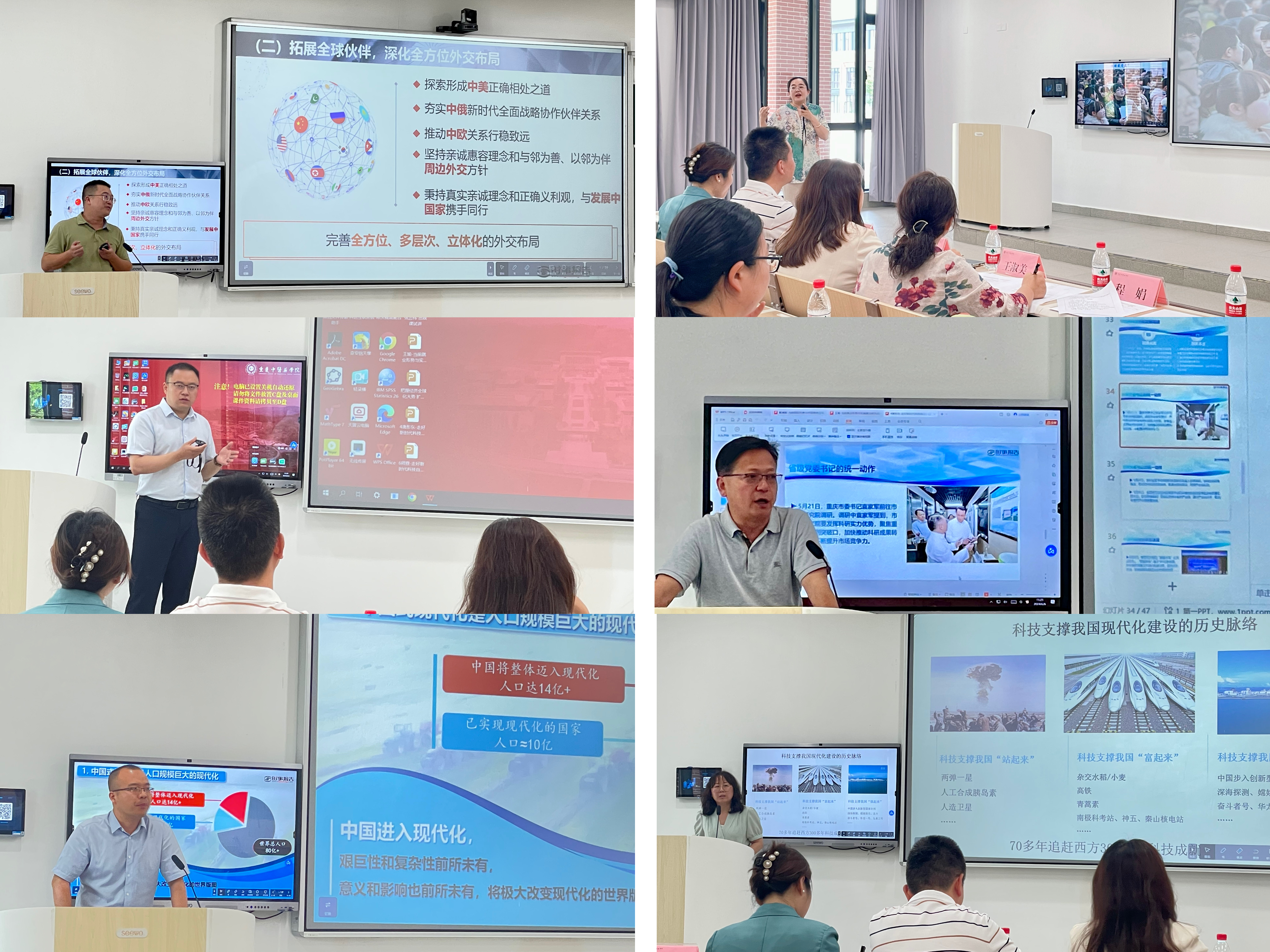 6位老师围绕科技创新、全过程人民民主、当前就业形势等热门话题进行试讲。试讲结束后,教务处黄思琴副处长,人事处陈廷英副处长和学校教学督导王淑美老师进行了点评,肯定了试讲老师们用丰富的人生阅历以及多学科的专业视角,展现了各自的独特优势。