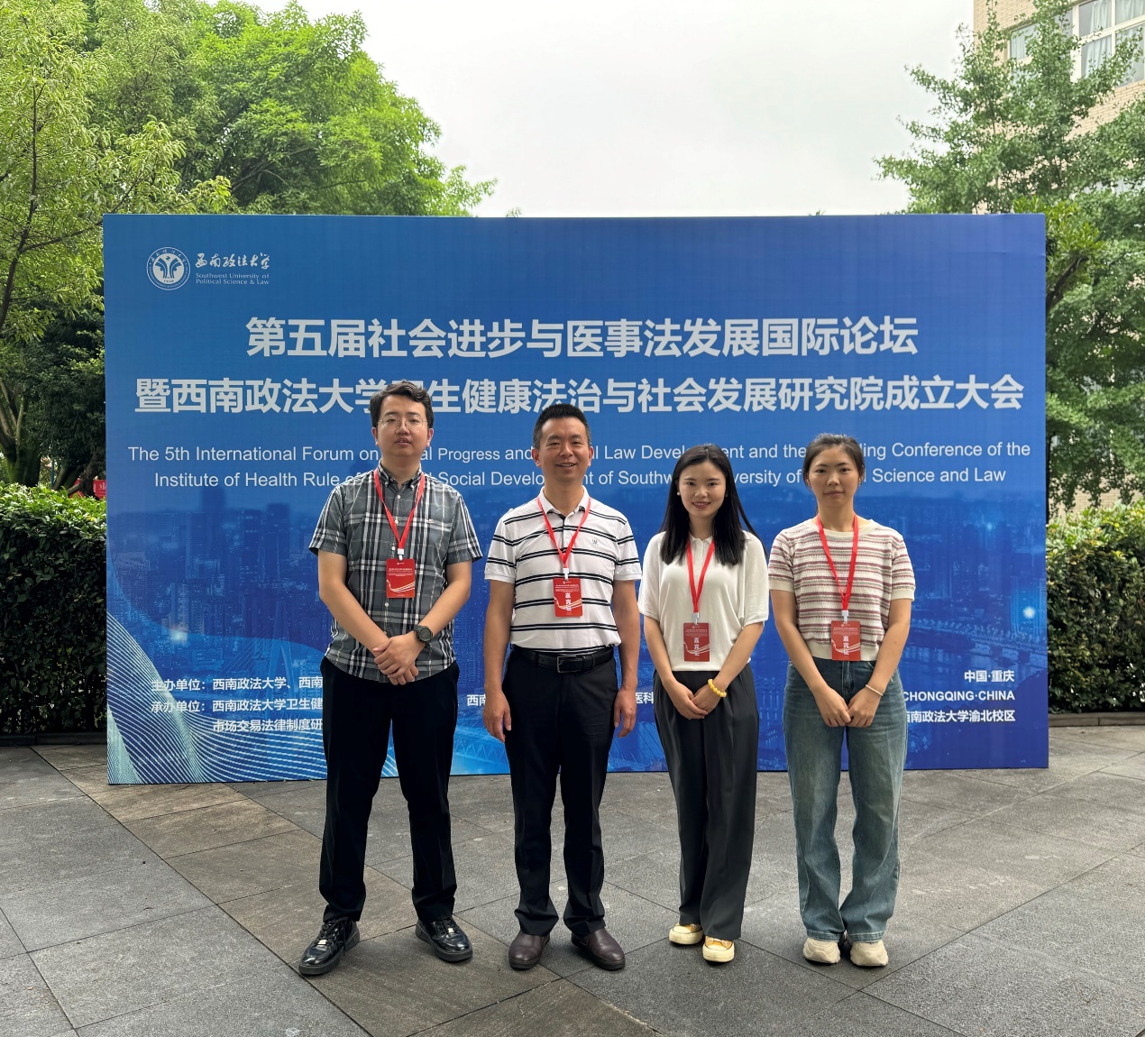 2024年6月29日,“第五届社会进步与医事法发展国际论坛暨西南政法大学卫生健康法治与社会发展研究院成立大会”,在西南政法大学举行。taptap点点马克思主义学院代浩云院长与卫生法与医学伦理学教研室的教师、发展规划处的同志参加了论坛。