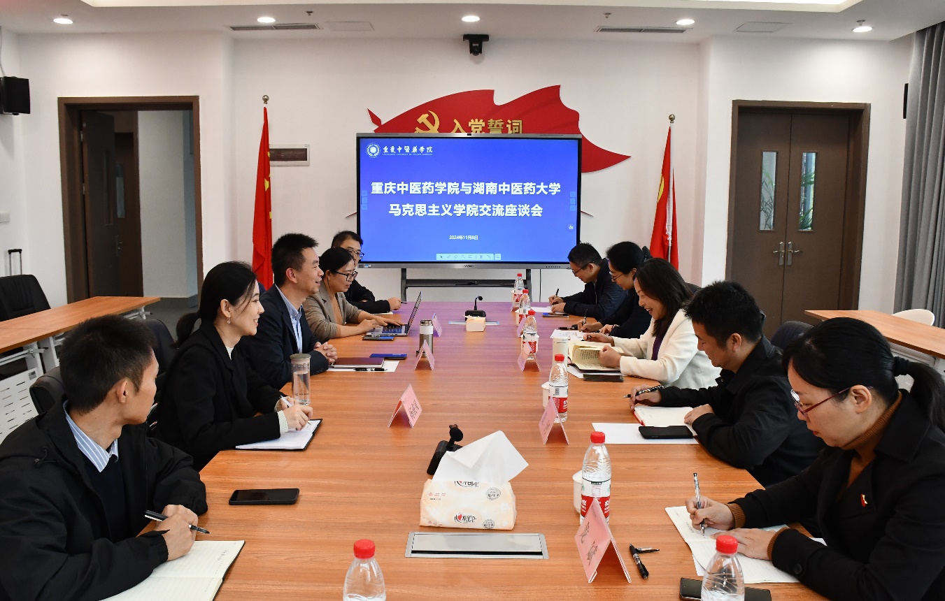 2024年11月8日上午,湖南中医药大学马克思主义学院党总支书记章小纯、副院长黄河一行7人来taptap点点交流调研,学院党委常委、纪委书记唐樵参与交流。