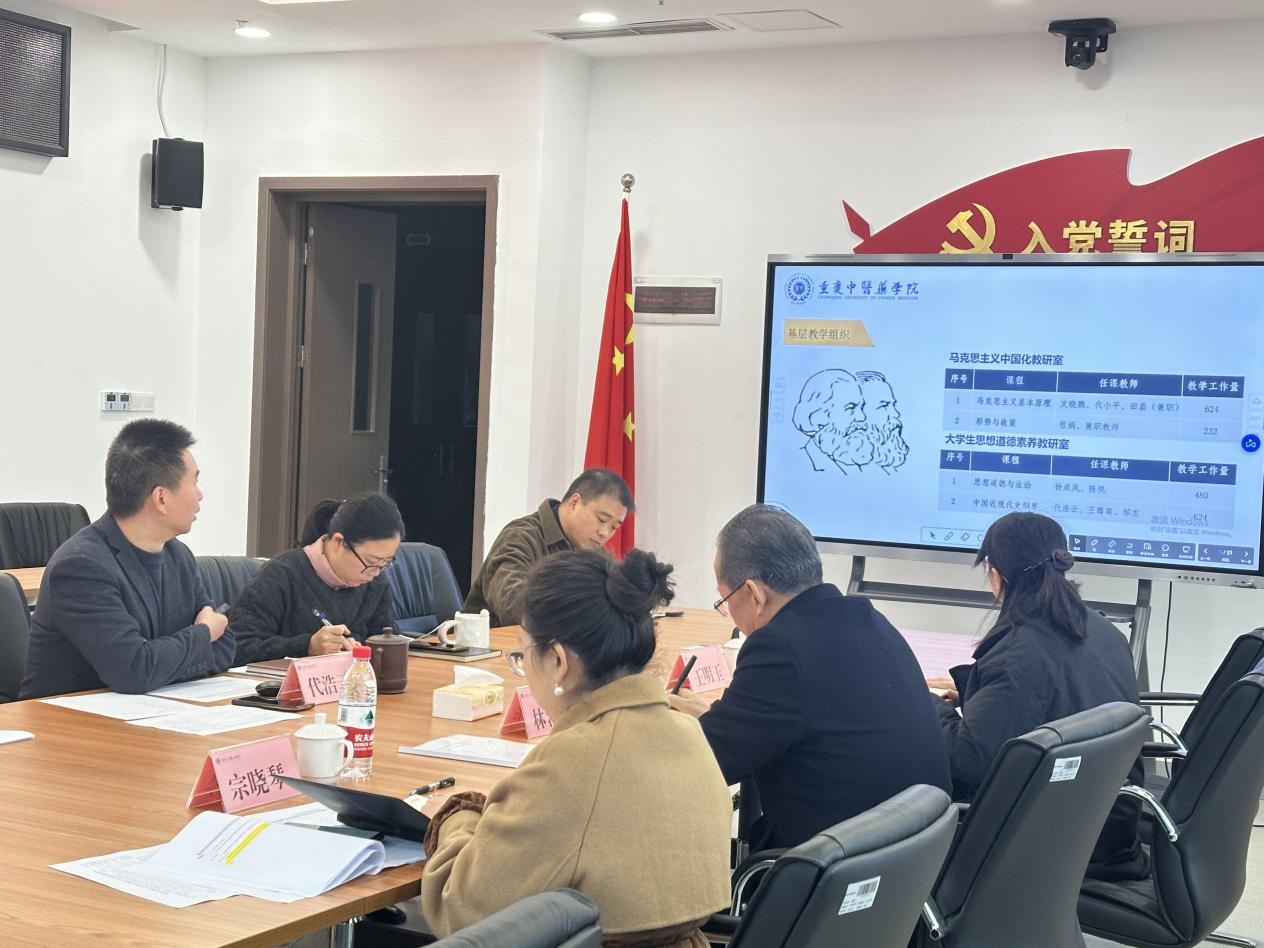 马克思主义学院院长代浩云从学院概况、教学工作、面临的问题等方面作了汇报。学院教师就教学工作量、期末机考、教学研究等方面面临问题进行了交流。