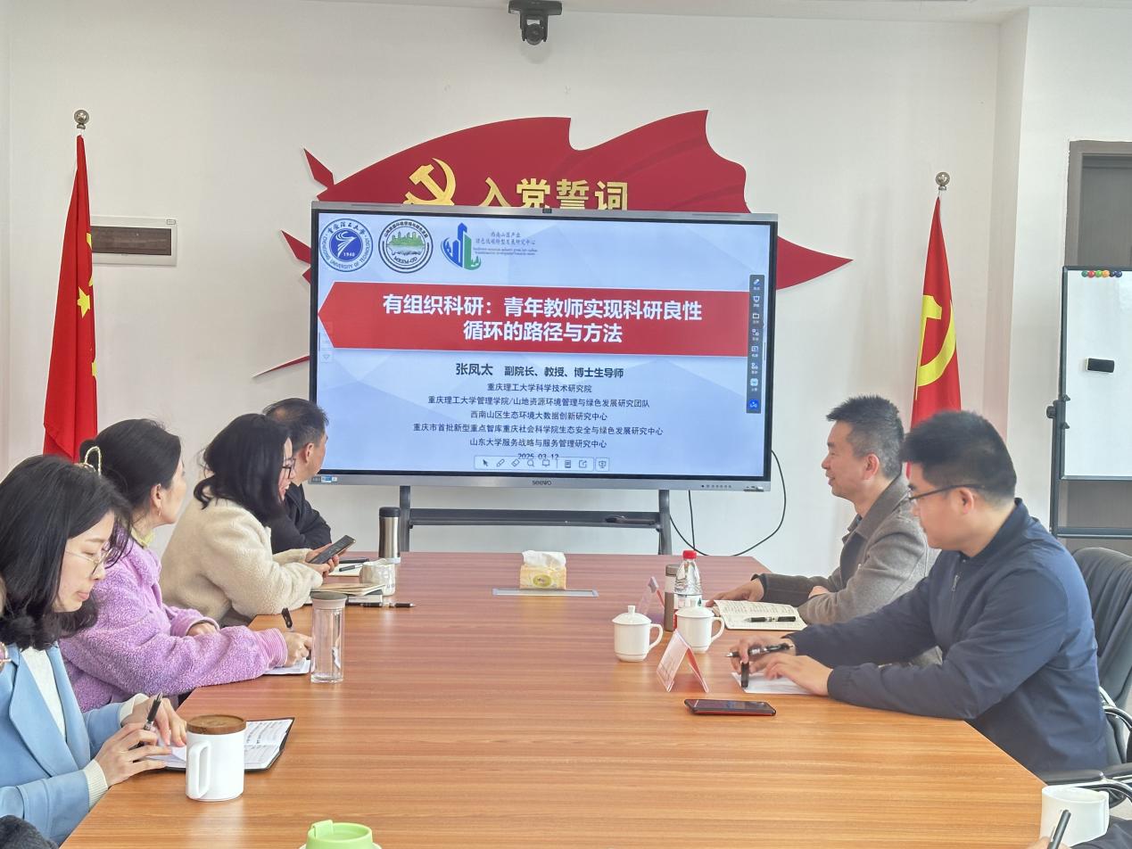 2025年3月12日,马克思主义学院开展科研训练营活动,重庆理工大学科学技术研究院副院长张凤太教授与会,同马院教职工热切交流,探讨青年教师实现科研良性循环的路径与方法。
