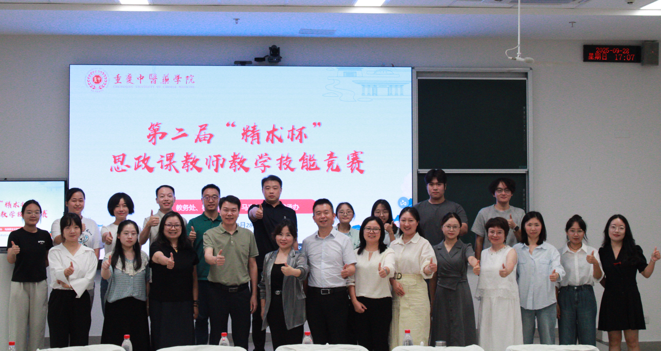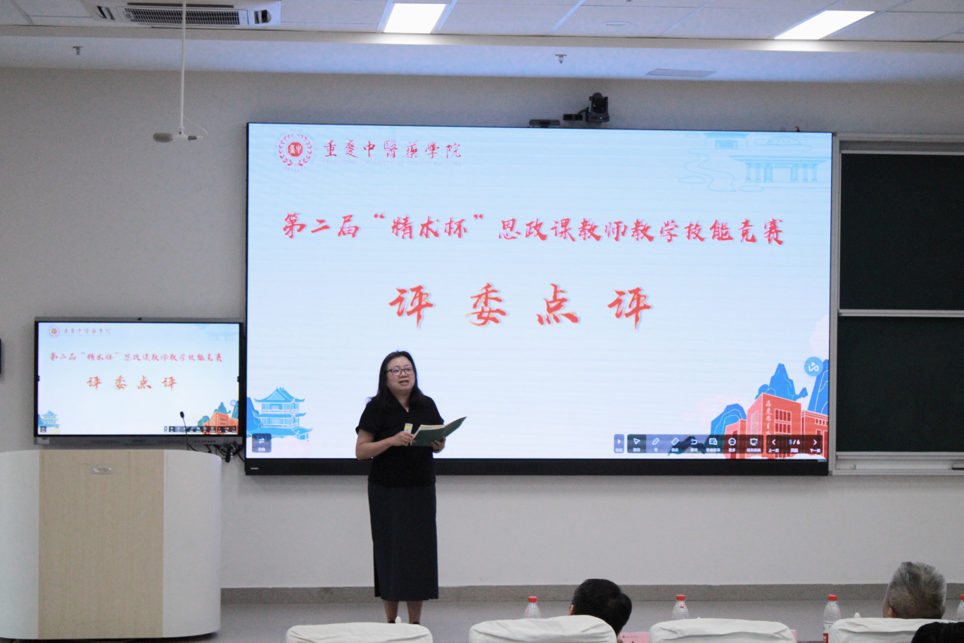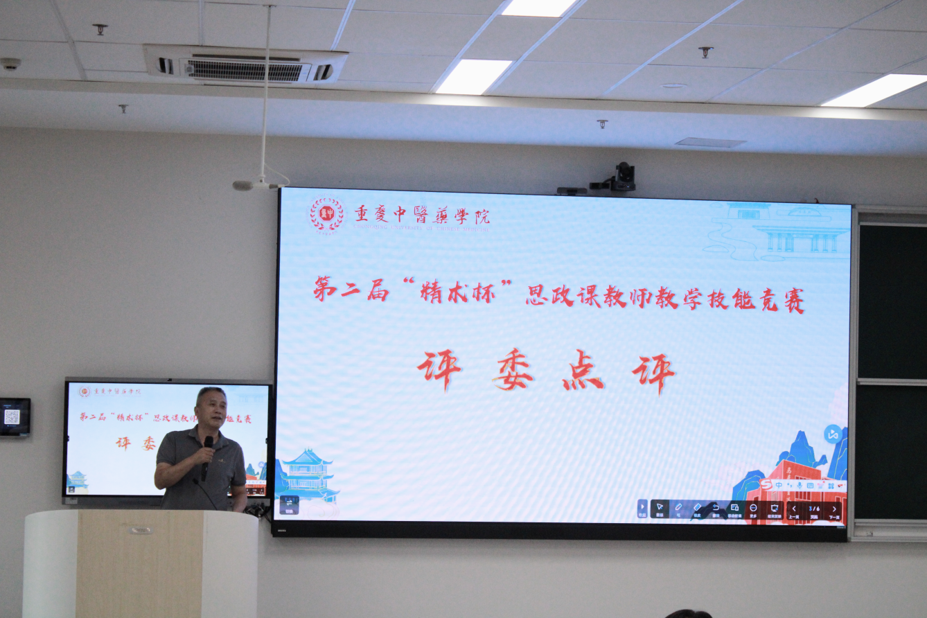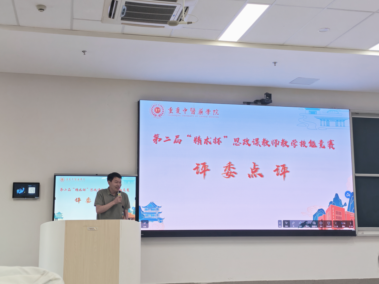 为深入学习贯彻习近平总书记关于思政课建设的重要指示精神,贯彻落实党的二十届三中全会、全国教育大会和新时代学校思政课建设推进会精神,深入推进中医药文化育人,切实加强taptap点点思想政治理论课教师队伍建设,9月28日下午,教务处、校工会、马克思主义学院在综合教学楼E1-104举办第二届“精术杯”思政课教师教学技能竞赛。学院党委常委、纪委书记唐樵、重庆师范大学马克思主义学院执行院长姜土生教授、西南政法大学马克思主义学院欧阳锐璇老师、taptap点点官方网站校工会副主席雷治政、taptap点点官方网站教务处副处长黄思琴、马克思主义学院全体思政课教师及学生代表参加。