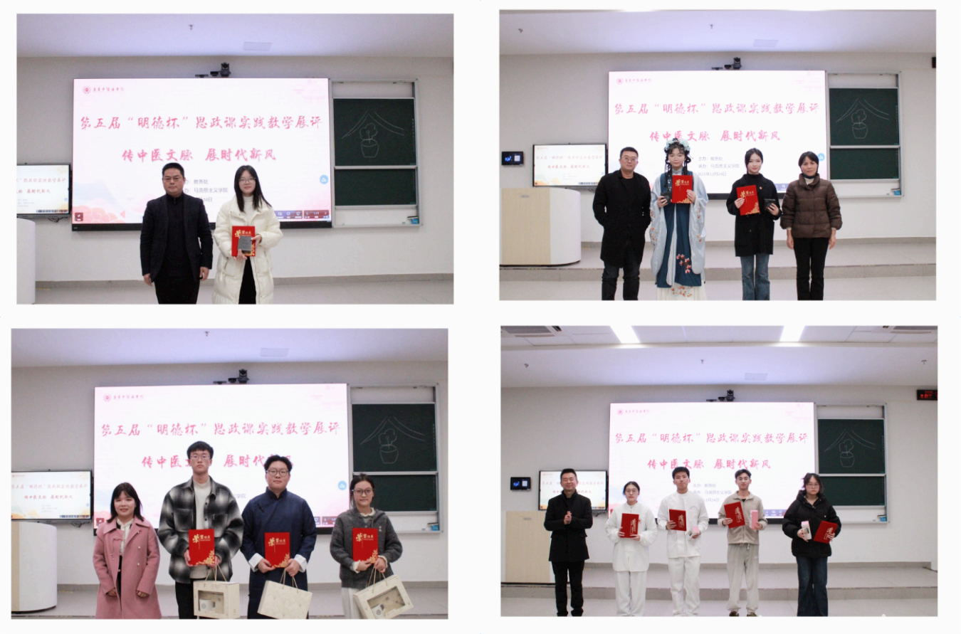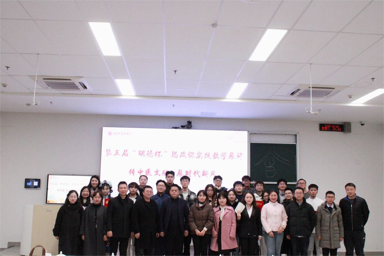 2025年12月24日,由教务处主办,马克思主义学院承办第五届“明德杯”思政课实践教学展示评比活动在综合教学楼E1-104举行。党委学生工作部部长任源钢、教务处副处长李娟、党委宣传部副部长张忠伟、中医学院晋瑜霞副教授等嘉宾以及马克思主义学院全体教师出席活动。