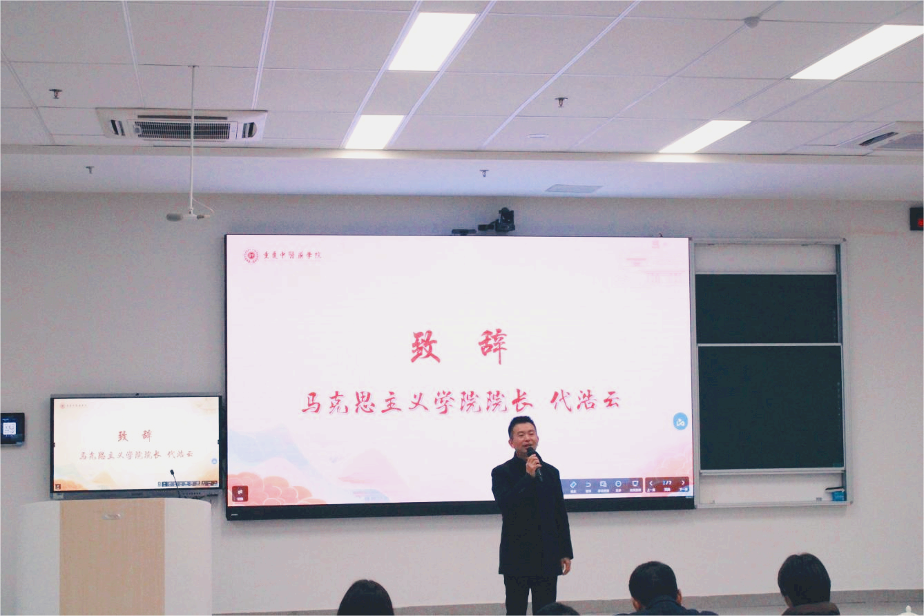 马克思主义学院院长代浩云教授在致辞中对同学们将理论学习与实践探索相结合取得的成果表示祝贺,同时对思政课的守正创新及其与专业课的实践融合提出了殷切的希望。