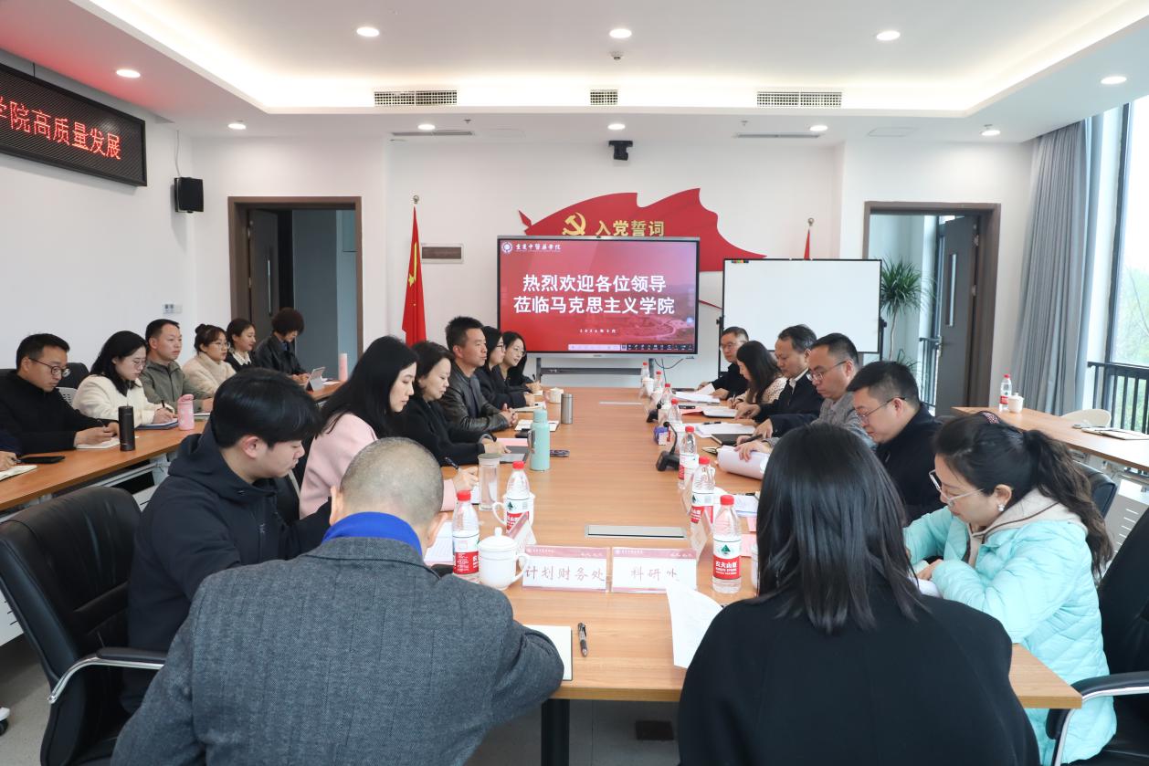 为切实解决马克思主义学院发展中的实际问题,以巡视整改为契机推动学院建设再上新台阶,3月25日下午,学院党委书记、院长王勇德,党委常委、纪委书记、监察专员唐樵率党政办公室、党委宣传部、党委教师工作部、教务处、科研处、计划财务处、资产与实验管理处等部门负责人,深入马克思主义学院开展专题调研。马克思主义学院全体教师参加座谈。