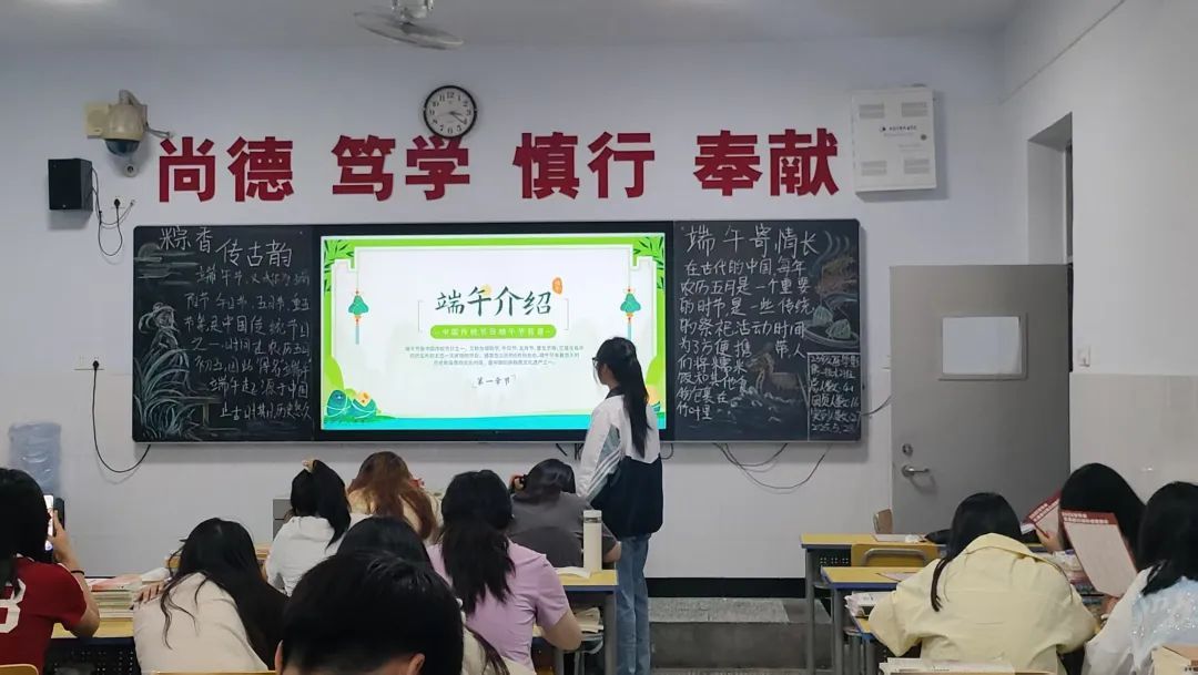 班会中,有的班级通过视频介绍与同学们共同探讨,有的围绕屈原的文化背景展开陈述,同学们深入了解了端午节的起源、传说以及吃粽子、赛龙舟、挂艾草等传统习俗背后的文化内涵。在整个活动中,大家积极思考,分享自己对端午文化乃至整个中华文化的深刻理解与感悟,传播着中华文化不仅是民族的,更是整个世界的,天下因优秀文化乃一家。