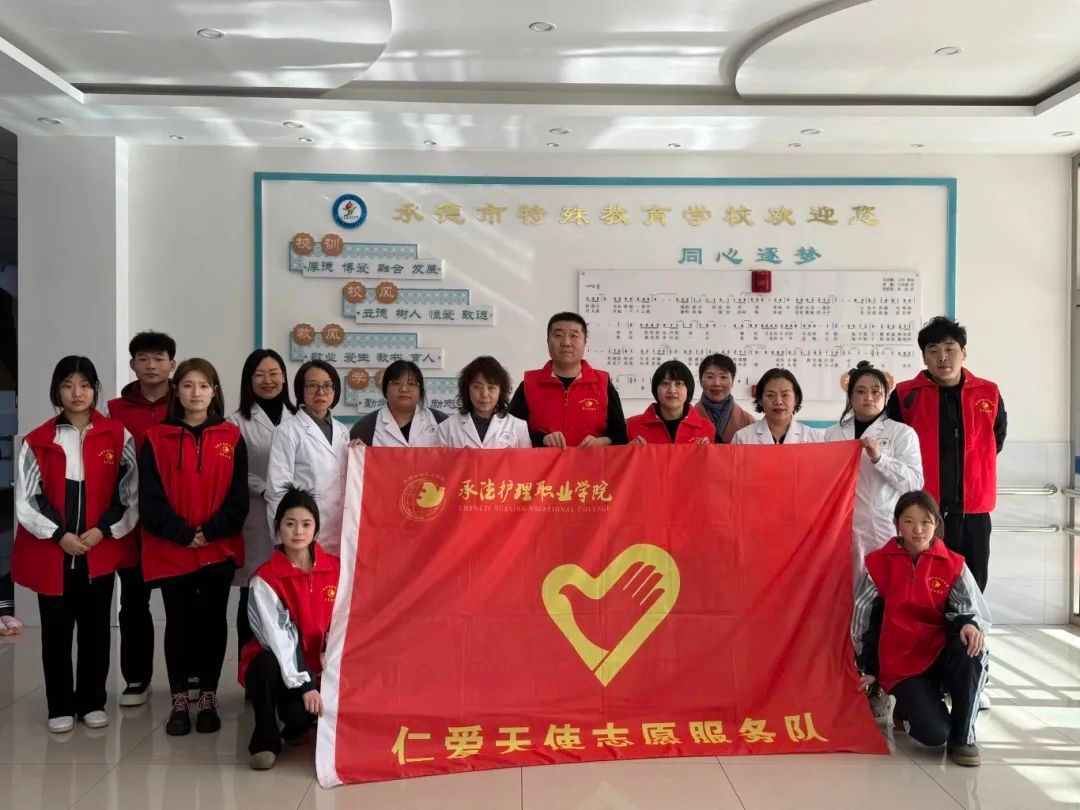 3月6日,beat365正版唯一官网必一仁爱天使志愿服务队携手护理系的8名专业教师,共同走进承德市特殊教育学校,开展了一场别开生面的“小橘灯”助残活动。此次活动旨在通过专业的医疗知识普及,为特殊教育学校的孩子们带去关爱与健康。