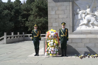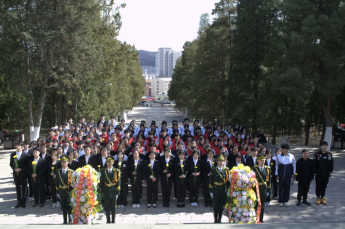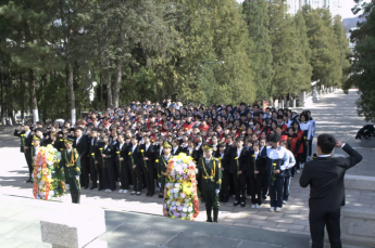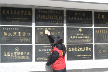 素雅的菊花碑前铺展,师生们轻抚花瓣,如同抚慰烈士未竟的牵挂。仪式尾声,志愿者们分组开展"守护英魂"志愿服务,用心擦拭碑身,以医学生的严谨呵护每寸历史记忆,让庄重的陵园在春风中焕发新的生机。