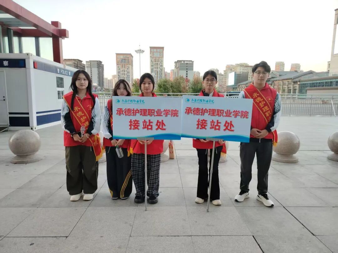 报到当天,志愿者们早早地来到各自岗位,有的在承德高铁站、普宁机场、承德汽车东站、承德火车站等交通枢纽设立接站点,手持醒目的接站标识,迎接来自五湖四海的新生。尽管舟车劳顿,但新生们一看到志愿者亲切的笑容,疲惫便消散了不少。志愿者们热情地帮忙搬运行李,引导新生前往学校的接送车辆,耐心解答他们关于学校和城市的各种问题。