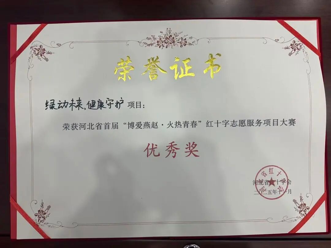2025年11月4日,河北省红十字会首届“博爱燕赵·火热青春”志愿服务项目大赛在石家庄落幕。beat365团委青年志愿者协会推选的“绿动未来,健康守护”项目荣获省级优秀奖。