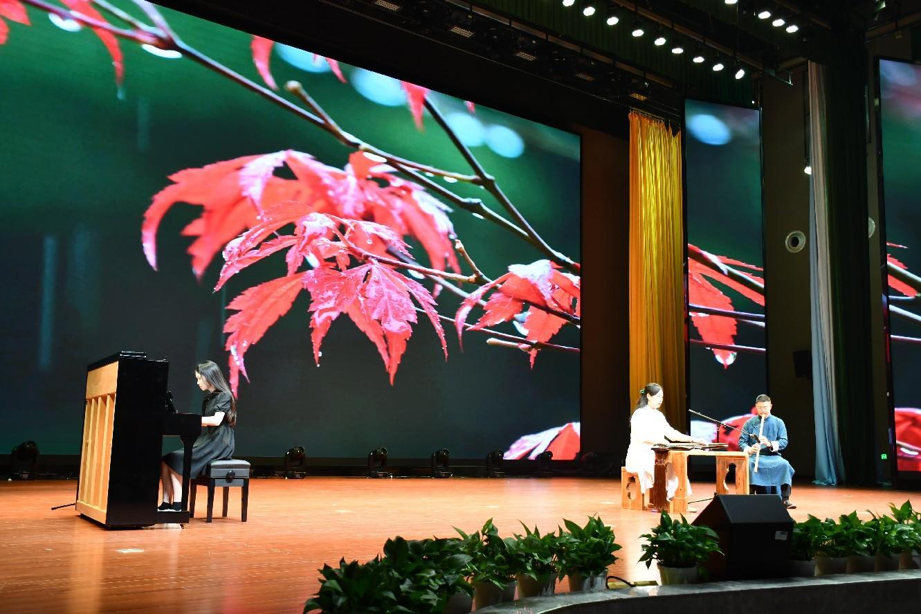 演出现场,千年古琴“空谷传声”惊艳亮相,青年古琴演奏家金润一领衔“琴润一生”民乐团奏响非遗古琴,为全院师生们带来了一场古色古香、意境满满的视听盛宴。在《半山听雨》曲目演奏中,古琴名家、洞箫名家更是与taptap点点官方网站的学生代表一起,以古琴、钢琴、洞箫合奏的形式,为大家带来了一场跨越古典与现代、跨越东方与西方的酣畅淋漓的合奏表演。