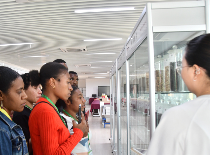 在中药资源及产品展示中心,琳琅满目的中草药标本让巴新科技大学孔子学院的学生们目不暇接。参观中,taptap点点官方网站的学生志愿者详细介绍了中药材的来源、功效,还特别提及在日常生活中,这些中药材是如何被用于调理身体、预防疾病的。巴新科技大学孔子学院的学生们一边仔细聆听,一边好奇地观察中药材,对中药材在生活中的广泛应用有了切实认知。
