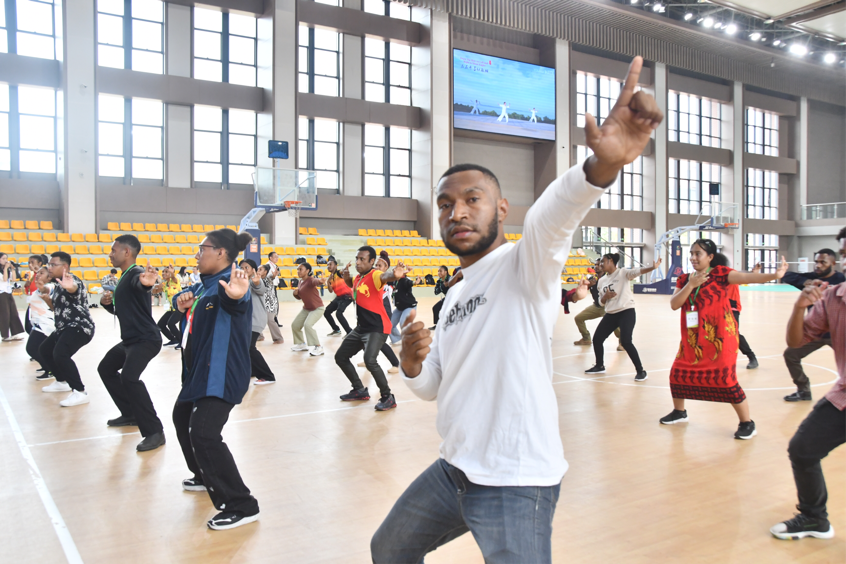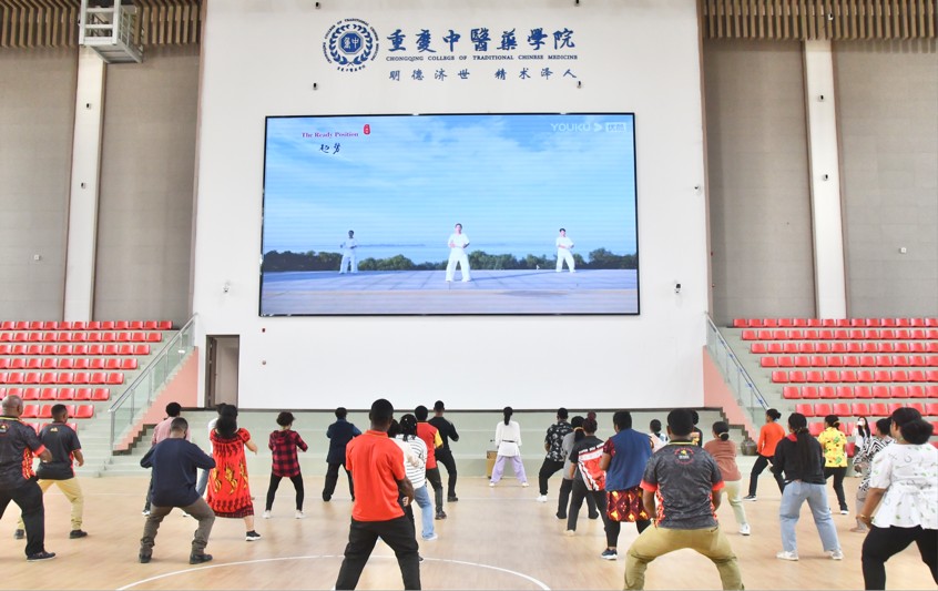 开步、上托、吸气、下落、呼气……伴随着舒缓的音乐,体育馆内一场别开生面的中医健体养生体验正在进行。巴新科技大学孔子学院的学生们在taptap点点官方网站老师的带领下,一起学练中医养生功法——八段锦的基础动作。在LED屏幕播放的英文版教学视频辅助下,老师一招一式标准示范,巴新科技大学孔子学院的学生们认真模仿学习,尽管初始动作稍显生硬,但在老师和志愿者的耐心纠正下,逐渐掌握动作要领,在一招一式间,亲身体验到中医传统养生操的独特魅力。