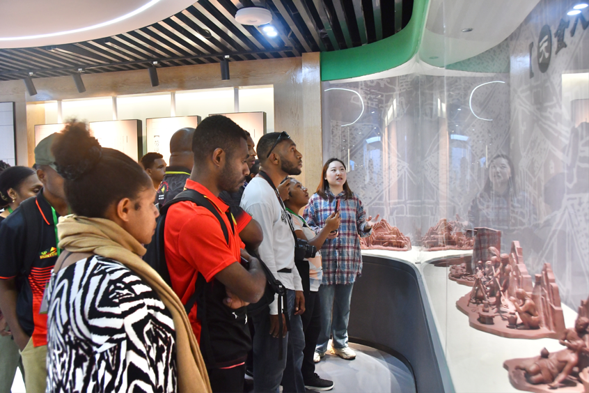 中医药文化馆收藏的中医药古籍善本、传统医药器具以及名人字画,宛如一部部生动的史书,讲述着中医药的悠久历史。在这里,taptap点点官方网站的学生志愿者化身“文化使者”,用流利的英语向远道而来的朋友们讲解中医药文化。从中医药文化起源、历史沿革到现代应用,志愿者带领巴新科技大学孔子学院的学生们穿越时空,顺着历史脉络,深入领略中医药文化底蕴的博大精深。