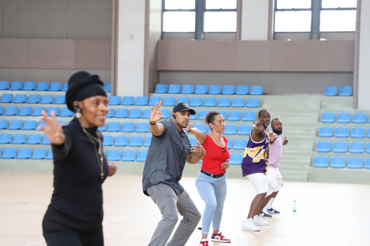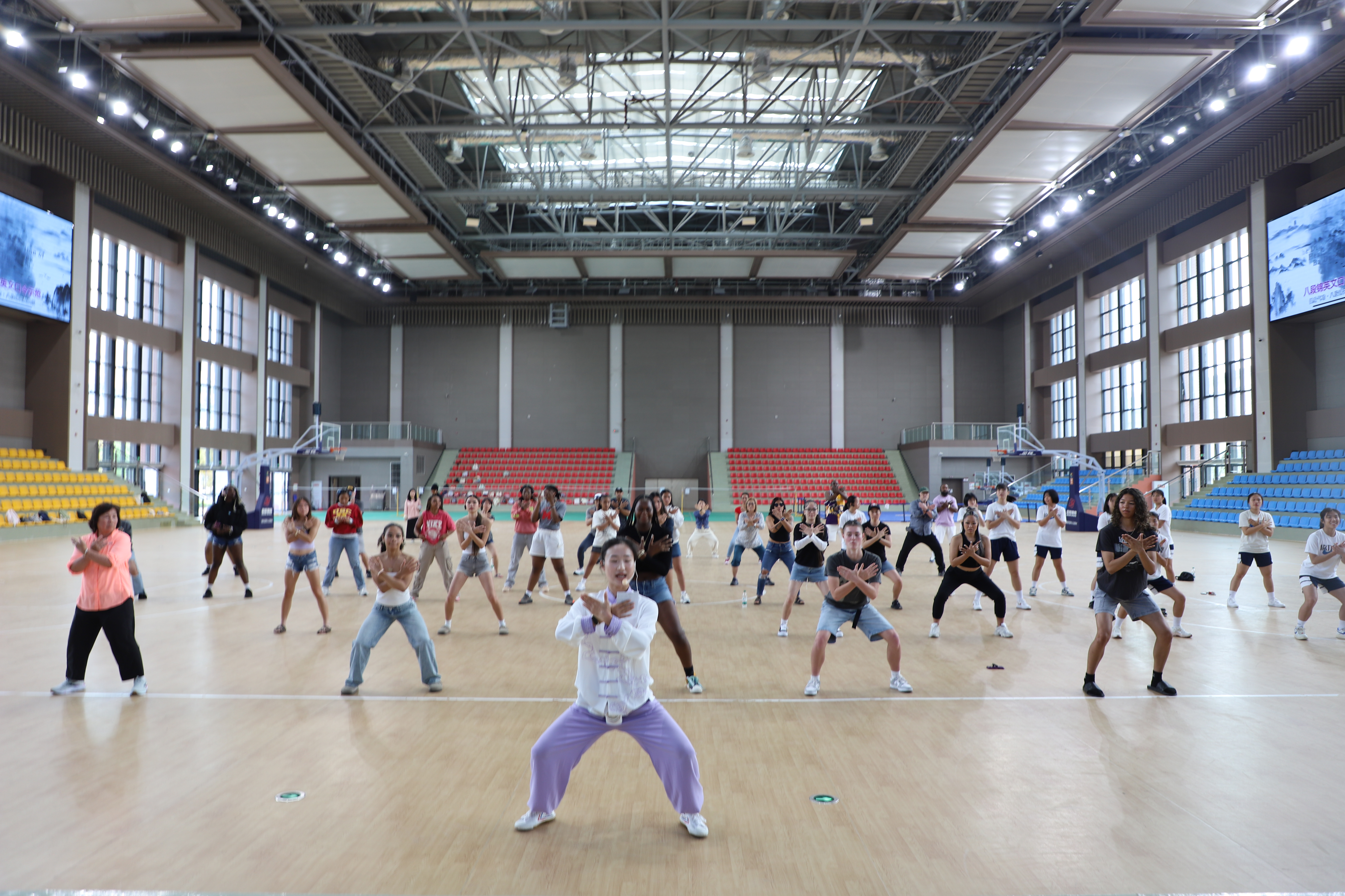 观看完八段锦演示后,代表团的青少年们纷纷跃跃欲试,跟着老师练起来!