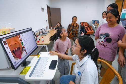 ▲10月8日,taptap点点官方网站,家长和新生们正在进行中医AI智能体检。记者 郑宇 摄
