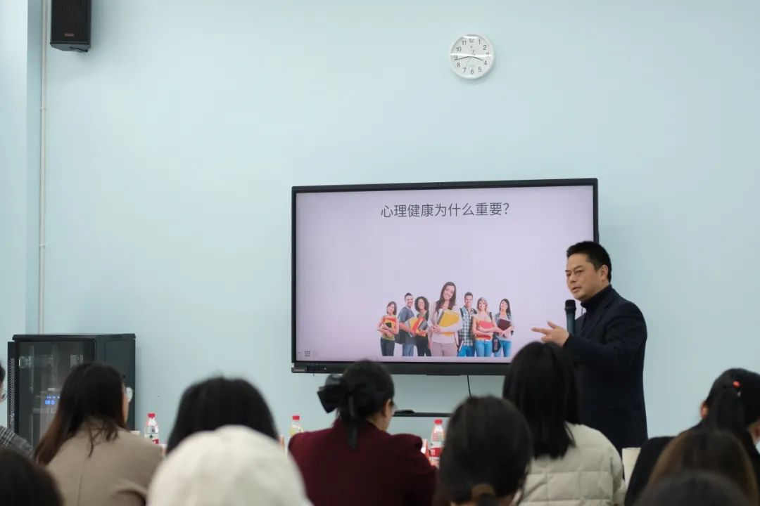 最后,心理健康与咨询中心的王瑜老师围绕“学生心理骨干的基本素养”等内容,主要从学生心理骨干的基本素养、认识心理健康、大学生常见的心理问题、如何当好心理委员四个方面,通过具体的实例引导同学们正确认识心理健康问题,明确心理委员的职责,积极主动地融入到班集体中,与同学们交流谈心,发挥好学院和班级之间的桥梁纽带作用,推动校园良好心理健康氛围的建设。