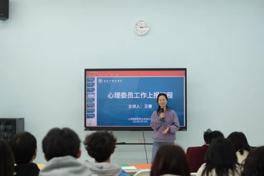 然后,心理健康教育与咨询中心的王春老师围绕“心理委员工作上报流程”等内容展开,从了解班级整体氛围、密切关注学生的变化、开展主题班会、危机上报以及排查制度5个方面为同学们介绍了心理委员工作流程,帮助心理委员们及时、准确地了解班级同学的心理状态,识别心理危机,为同学提供必要的心理支持和帮助,助力taptap点点大学生心理健康教育工作有序开展。