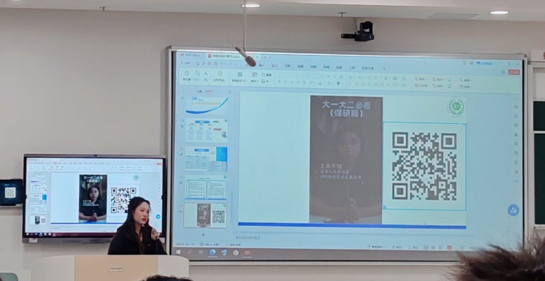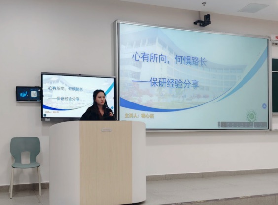 随后,杨心语学姐分享了自己的保研经历。她讲述了自己如何制定目标、规划时间、提升学术能力等方面的宝贵经验。她鼓励大家要敢于追求梦想,勇于挑战自我,不断提升自己的能力和水平。