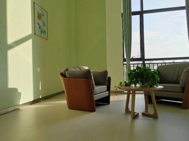 “心理咨询室”内,柔软的沙发、治愈的图画和充满生机的绿植让学生倍感温馨舒适。安静舒适的环境给同学们提供了良好的阅读环境,在这个宁静的空间里,同学们可以静下心来阅读、学习和思考,同时也能够与心理中心的老师们进行深入交流。