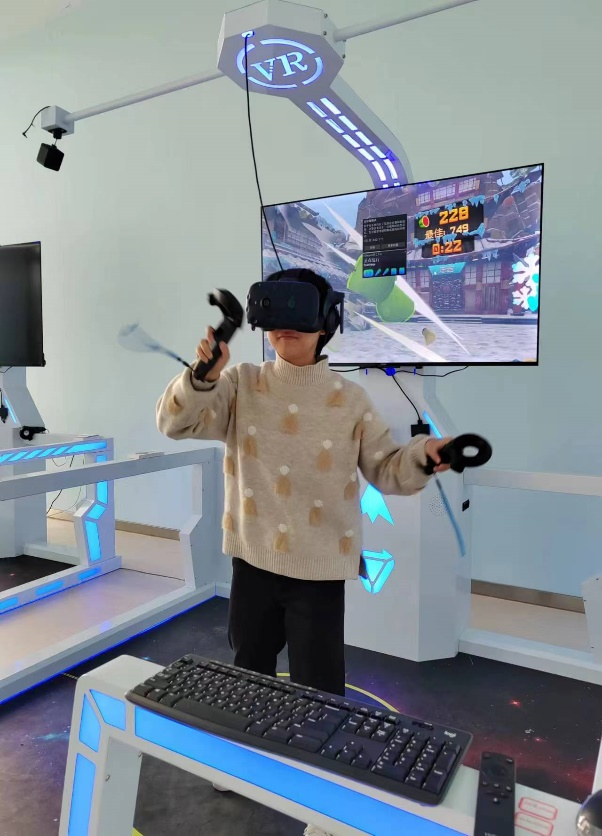 活动现场,同学们在体验各种心理健康互动游戏。其中,有极限滑雪、切西瓜等虚拟现实(VR)游戏,还有解压宣泄室中的拳击手套、海绵垫等道具,以及墙面上的DIY手工制作区。这些活动不仅让同学们在轻松愉快的氛围中释放压力,还培养了他们的动手能力和创造力。