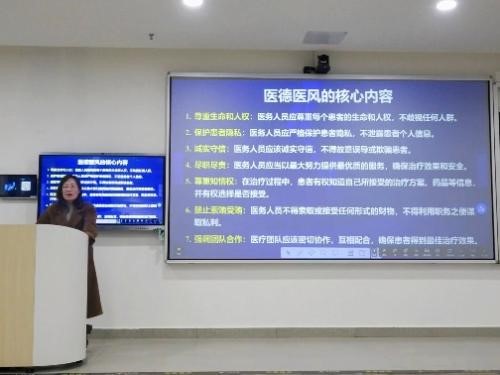大会进行最后一项“医德医风与职业生涯规划教育“,李学智副院长发表了关于医德医风与职业生涯规划的深入讲话,为同学们未来的学习和职业生涯提供宝贵的指导与启示。针对当前大学生中普遍存在的游戏和上网成瘾问题,发表了深刻的见解。鼓励同学们要珍惜大学时光,避免沉迷于手机和网络。随后,就医德医风这一议题进行了现身说法,结合自身从医经历,深入阐述了医德医风在医学领域的重要性。通过生动真实的案例,让同学们对医德医风有了更深刻的理解。她强调,作为未来的医务工作者,同学们应该时刻铭记医德医风的重要性,将其融入日常学习和未来的职业生涯中。
