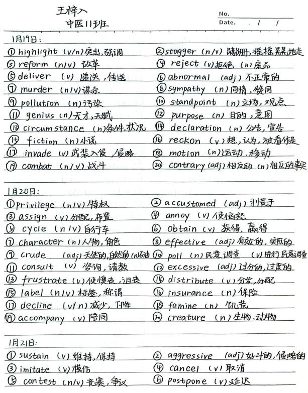图 单词打卡优秀作业(左图中医学11班王梓入、右图中医学2班陈卓)