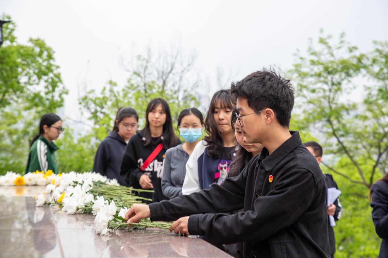 同学们向英烈献花,此花虽小,谨寄哀思。无限的敬意,无尽的追思,无穷的力量。