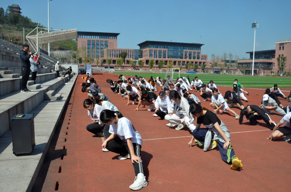 活动当天,气候宜人,选手们热情高涨,早早地齐聚山脚下,签到领取号码牌,操场上洋溢着青春的气息。活动开始前,各队伍在运动场集合,由通识学院老师带领完成热身锻炼。