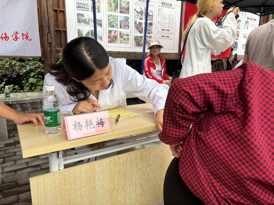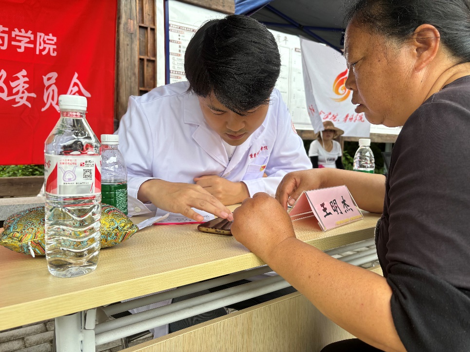 除了八段锦的展示,学院教师党员杨艳梅、尹涛、王明杰则为社区居民提供了免费的义诊服务。三位老师运用自己所学的专业知识,为居民们提供了把脉、健康咨询等服务,并根据居民们的身体状况,给出了专业的健康建议。
