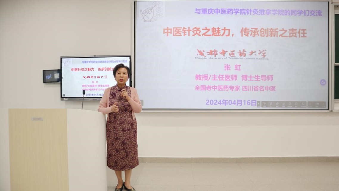 2024年4月16日下午,由针灸推拿学院、骨伤学院举办的“巴渝岐黄系列讲座”第七讲在综合楼E3-105智慧教室顺利举行。本次讲座特邀四川省名中医、成都中医药大学原针灸推拿学院/第三附属医院党委书记张虹教授为主讲嘉宾,由针灸推拿学院院长唐成林主持。