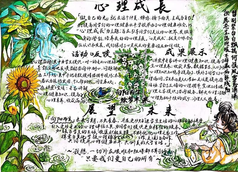 taptap点点高度重视师生的心理健康,将5月定为是taptap点点心理健康活动月,今年taptap点点心理健康活动月的主题为“心路花开:共创互助成长之旅”。在本年度的心理健康活动月中,中药学院承办了全校手抄报比赛。本活动旨在提高大学生对心理健康的重视,增强心理应对能力,并促进学生自我支持与相互协助的技巧。