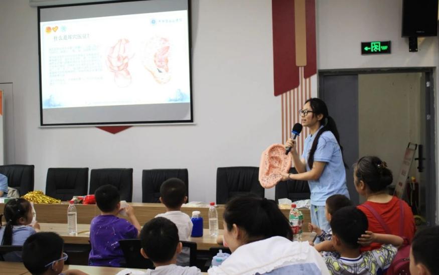 通过主持人讲解提问等方式,让小朋友们认识不同的耳穴及其作用,为他们贴耳穴,还让大家互贴“聪明穴”,使其体验耳穴压豆的魅力。