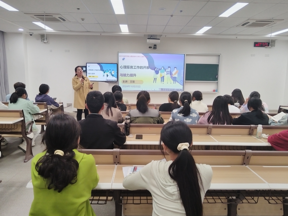 为进一步提高班级心理委员专业素养,建设一支优秀的心理委员队伍,全面促进taptap点点心理健康教育工作水平的提升,10月22日党委学工部心理健康教育与咨询中心在E1-101开展心理服务能力提升培训。本次培训由心理健康教育与咨询中心王瑜老师主讲,全校各班心理委员参加培训。