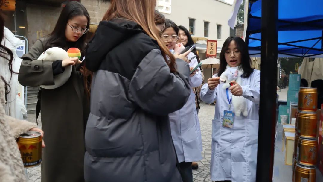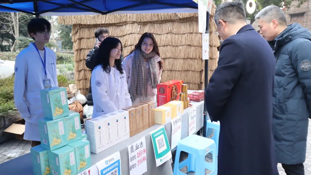学生们详细讲解每种产品的独特配方、功效和制作工艺,吸引了众多参观者驻足聆听、咨询和购买,现场气氛热烈非凡。