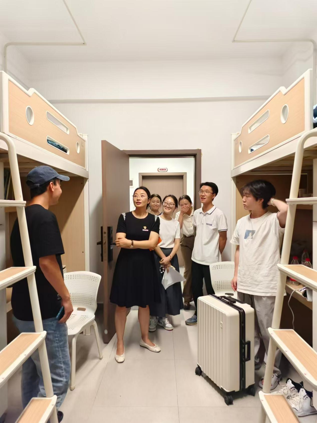 开学喜迎新气象,暑气难掩入学心。为进一步做好新学期学生工作,加强安全管理,深入了解学生思想动态,2024年9月1日晚20:00,中医学院党总支副书记姚玲、副院长李艳一行带领学院辅导员、新生班主任等分时段、分批次走访学院宿舍,慰问新同学。